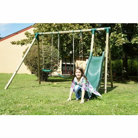 - Inclus : deux balançoires, une Ă©chelle, un toboggan, kit dâancrage, systĂšme dâaccroche, visserie
