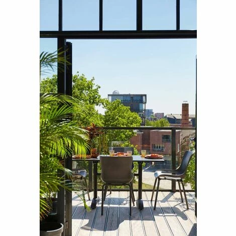 Moderne, tendance et pliable ! Découvrez notre table de jardin SOPHIE BISTRO avec plateau HPL (stratifié haute pression) et base en aluminium. Facile à ranger, cette table est également trÚs solide.