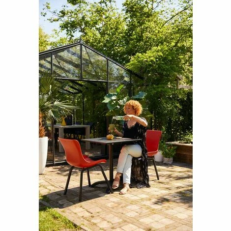Moderne, tendance et pliable ! Découvrez notre table de jardin SOPHIE BISTRO avec plateau HPL (stratifié haute pression) et base en aluminium. Facile à ranger, cette table est également très solide.