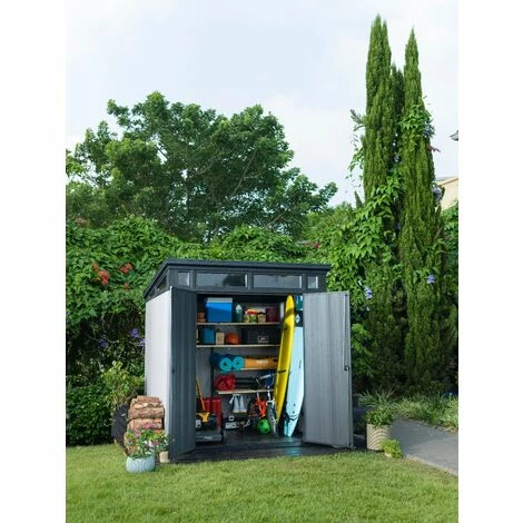 Conseil de l’expert:L’abri de jardin en résine Brossium® monopente 77 est à monter sur un sol à niveau.