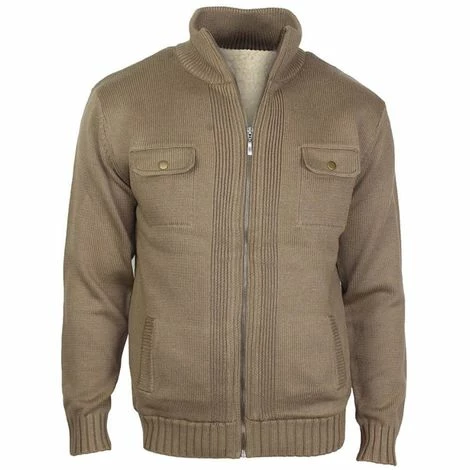 Veste en tricot entierement fourrée.Col montant.Fermeture zippée.2 poches poitrine à rabat et bouton pression.2 poches latérales.Bords cÎtes à la taille et aux poignets.