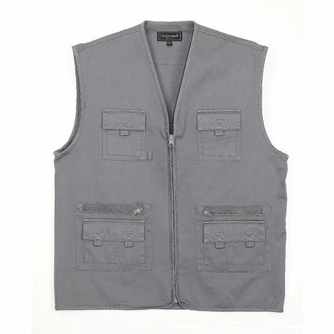 Gilet sans manche multipochesFermeture zippée2 grandes poches zippées en bas avec 2 poches supplémentaires chacune fermées par grippers.2 double poches à rabat en haut. Poche carnier dans le dos