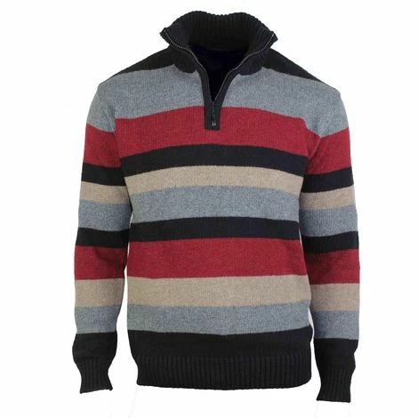Pull col montant zippé. 30% de laine. Bords cÎtes aux poignets et à la taille. Chaleur et confort garantis
