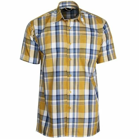 Chemise manches courtesFils teints1 poche poitrineBas droitPointes de col boutonnéesRepassage facile